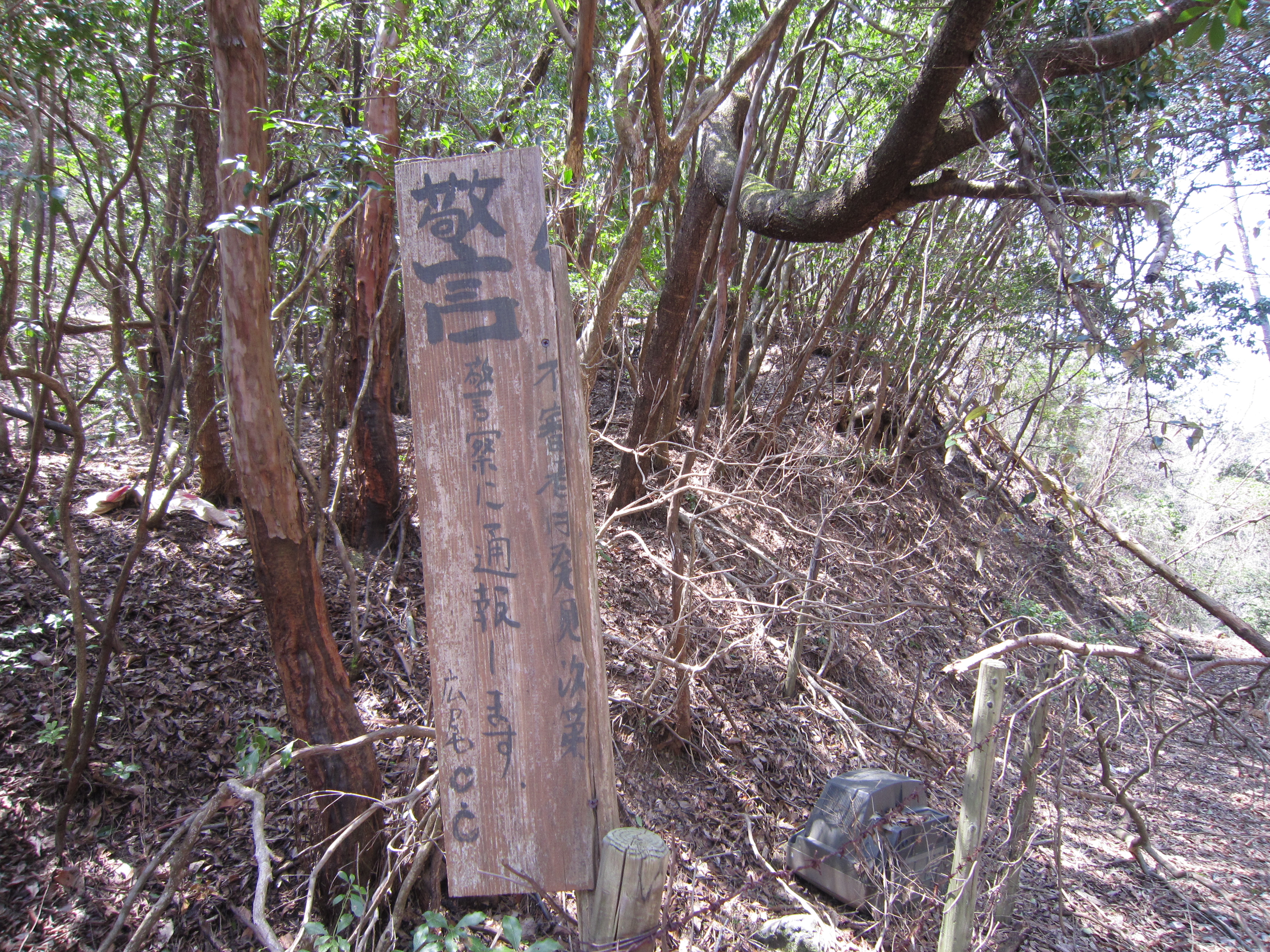 国道303号線は途切れ、「不審者は、警察に通報する」との警告板。